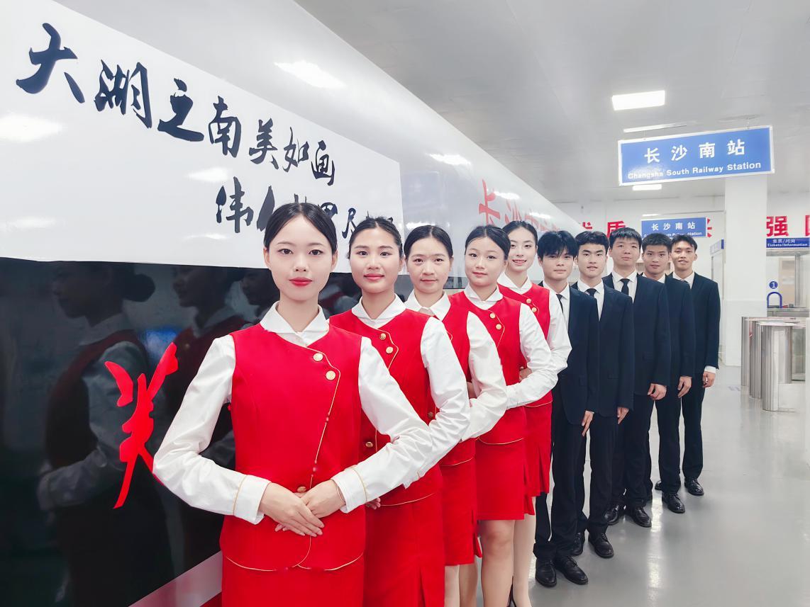 “歡迎您乘坐‘芙蓉號’旅游專列,暢享湖湘文化之旅”。6月20-21日,民航學(xué)院高鐵乘務(wù)服務(wù)綜合實訓(xùn)室《空鐵旅游地理》課程實訓(xùn)成果展——“芙蓉號”專列展示現(xiàn)場人頭攢動,“旅客”絡(luò)繹不絕。成果展由2022級高速鐵路客運服務(wù)專業(yè)10名學(xué)生組成的“芙蓉號”小組設(shè)計、籌備,以“大湖之南美如畫,偉人故里盡朝暉”為主題。