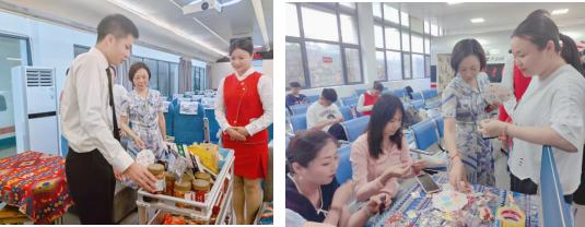 恰逢端午來臨,為弘揚非遺文化,“芙蓉號”小組選擇了端午香囊和五彩手鏈供候車室“旅客”進(jìn)行手工體驗?,F(xiàn)場還提供具有芳香開竅的艾葉、薰衣草等中草藥填充,使香囊具有清香、驅(qū)蟲、避瘟、防病等功能。候車室內(nèi)提供大屏播放教程和現(xiàn)場指導(dǎo),不少師生前來爭相選購體驗。