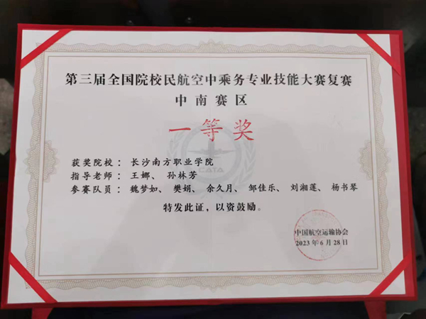經(jīng)過激烈的角逐,我校參賽隊(duì)伍榮獲團(tuán)體一等獎(jiǎng),兩個(gè)單項(xiàng)一等獎(jiǎng)(機(jī)上廣播一等獎(jiǎng) 、機(jī)上應(yīng)急設(shè)備一等獎(jiǎng)),兩個(gè)優(yōu)秀指導(dǎo)教師獎(jiǎng)。魏夢(mèng)如同學(xué)代表所有獲獎(jiǎng)選手上臺(tái)發(fā)表獲獎(jiǎng)感言。比賽過程中我校民航學(xué)子以精湛的專業(yè)技能、優(yōu)秀的職業(yè)素養(yǎng)展示出矚目耀眼的風(fēng)采,將代表中南賽區(qū)迎戰(zhàn)全國總決賽!