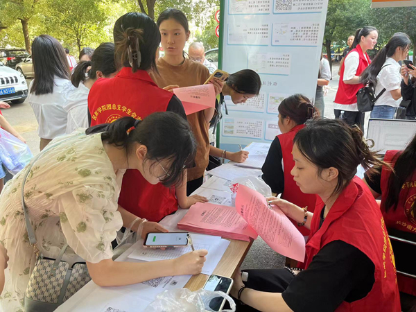 學校門口、籃球場、宿舍樓共設置迎新服務點4個