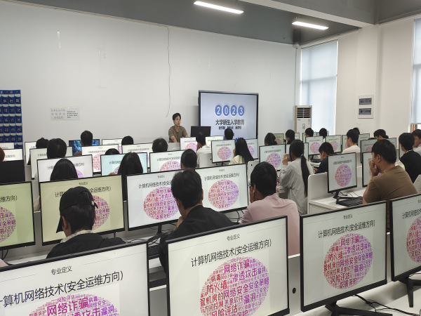 安全運(yùn)維專業(yè)負(fù)責(zé)人向偉榮老師從專業(yè)定義、就業(yè)前景、就業(yè)崗位為新生進(jìn)行專業(yè)介紹,深入剖析網(wǎng)絡(luò)安全領(lǐng)域的內(nèi)外動(dòng)態(tài),助力學(xué)員全面了解行業(yè)前景。企業(yè)導(dǎo)師劉港亮和陳偉以生動(dòng)的演示,向新生們展示了木馬程序與勒索病毒攻擊的實(shí)質(zhì)與防范方法,并對(duì)網(wǎng)絡(luò)安全行業(yè)的現(xiàn)狀、發(fā)展趨勢(shì)進(jìn)行了深入分析,為新生們明確未來(lái)職業(yè)發(fā)展方向。優(yōu)秀校友張振華以親身經(jīng)歷為例,分享了他在網(wǎng)絡(luò)安全領(lǐng)域的成長(zhǎng)歷程,為新生們樹(shù)立了學(xué)習(xí)與發(fā)展的目標(biāo)。