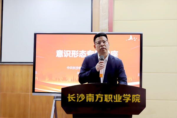 為進一步提升新形勢下學校意識形態(tài)工作水平,推進意識形態(tài)工作責任制落實,4月23日,長沙南方職業(yè)學院在校本部學術(shù)報告廳舉辦意識形態(tài)專題培訓講座。全體中層及以上干部、各教研室主任、全體思政課教師、輔導員、黨校指導老師及第40期入黨積極分子學員代表參加。政府督導、校黨委書記趙小群主持培訓會。