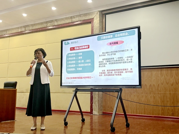基礎(chǔ)教學(xué)部尹文偈教授圍繞師德師風(fēng)建設(shè)為新員工作主題講座。她引經(jīng)據(jù)典、旁征博引,以深厚的學(xué)術(shù)功底和豐富的教育經(jīng)驗,直擊新員工的心靈深處,激勵他們堅守立德樹人初心,矢志不渝地追求成為“有理想信念、有道德情操、有扎實知識、有仁愛之心”的新時代好老師,為學(xué)校教育事業(yè)的發(fā)展貢獻(xiàn)智慧和力量。