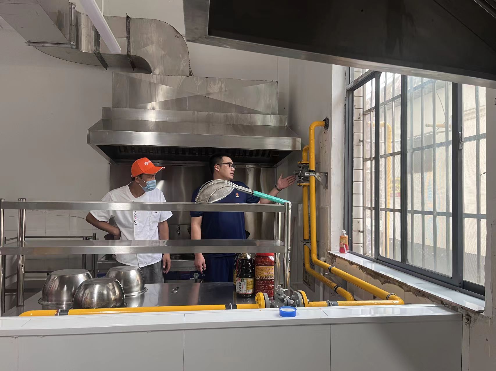 呂勇老師對食堂內(nèi)的滅火器、消防栓、煙霧報警器等消防設(shè)施進行安全隱患排查,確保消防設(shè)備的完好性和有效性。