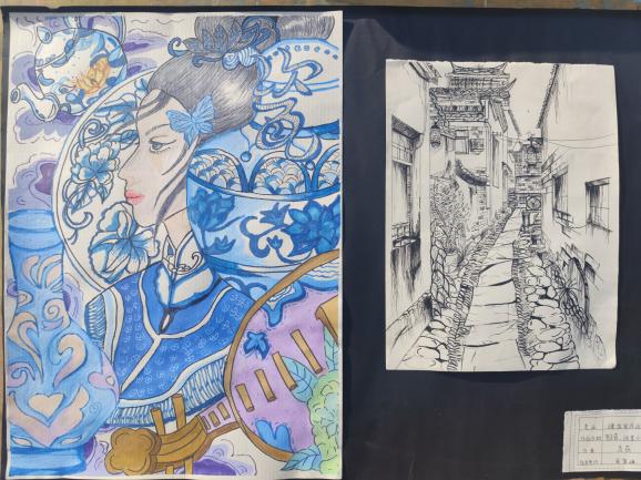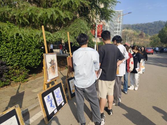“這是我的畫!你們看... ...”“哇噻!這個作品好美??!畫得真好... ...”“學(xué)長學(xué)姐的采風(fēng)作品這么優(yōu)秀,我也要向他們學(xué)習(xí),努力學(xué)好專業(yè)技能... ...”畫展現(xiàn)場擠滿了駐足觀看的師生,對采風(fēng)作品贊不絕口。