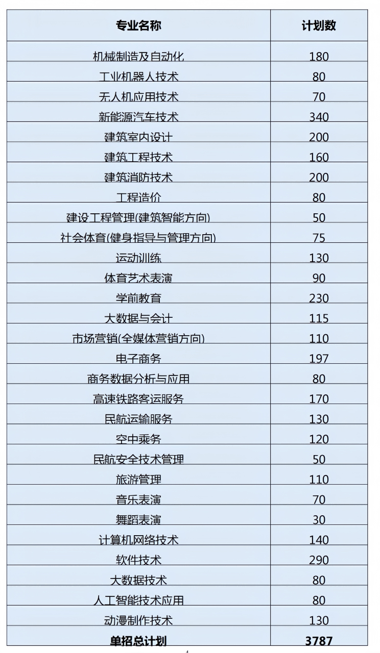 第四章 單招計(jì)劃及專業(yè)