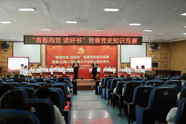 為使黨校入黨積極分子熟知熟記黨章黨史,學(xué)習(xí)好、遵守好、貫徹好、維護(hù)好黨章,落實(shí)推動(dòng)“楚怡”讀書(shū)行動(dòng)進(jìn)一步深入,鞏固黨校教育成果,表彰和鼓勵(lì)優(yōu)秀。5月16日下午,學(xué)校在校本部學(xué)術(shù)報(bào)告廳舉行黨章黨史知識(shí)競(jìng)賽暨黨校第40期入黨積極分子培訓(xùn)班結(jié)業(yè)典禮。政府督導(dǎo)、校黨委書(shū)記趙小群出席,紀(jì)檢監(jiān)察室、黨委辦公室負(fù)責(zé)人,各學(xué)院學(xué)生黨支部書(shū)記,指導(dǎo)老師及黨校第40期入黨積極分子代表參加。