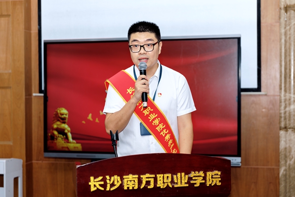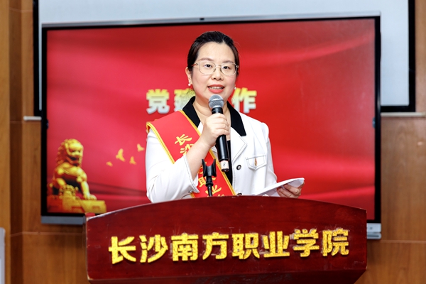 龔鵬作優(yōu)秀黨員干部代表發(fā)言。他表示,作為一名學(xué)工系統(tǒng)的黨員教育工作者,要始終立心鑄魂,旗幟鮮明講政治。堅(jiān)定正確政治方向,始終圍繞“立德樹人”根本任務(wù)開展工作、思考問題、指導(dǎo)實(shí)踐和育人育才;要守正創(chuàng)新,凝心聚力抓隊(duì)伍建設(shè)。當(dāng)好學(xué)生成長(zhǎng)成才的引路人和領(lǐng)航員角色,譜寫新時(shí)代“南職”絢麗新篇章!