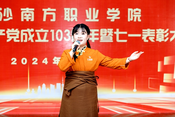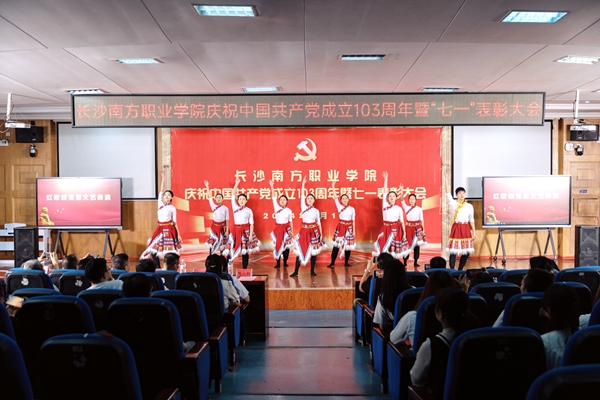 為展示“黨建+思政”育人成果,表彰大會(huì)后,學(xué)校舉辦了“紅歌頌黨恩“文藝匯演,學(xué)校音樂表演和舞蹈表演專業(yè)的師生們將愛黨、愛國(guó)、愛家鄉(xiāng)的美好情懷融入旋律、舞蹈當(dāng)中,用真摯的情感、昂揚(yáng)的狀態(tài)、嘹亮的歌聲、歡快的舞姿,向黨的生日獻(xiàn)禮。