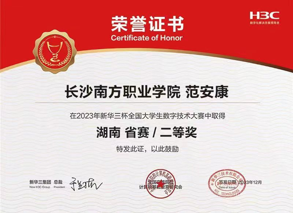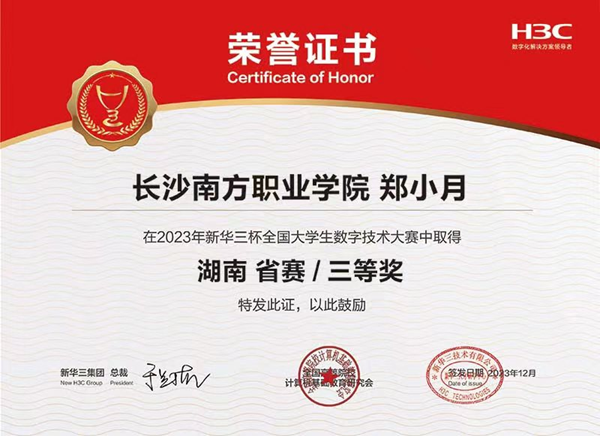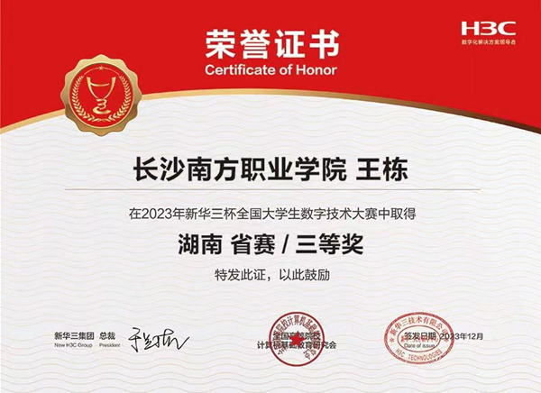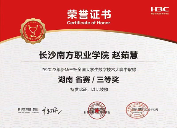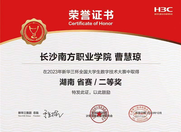 近日,第13屆“新華三杯”全國(guó)大學(xué)生數(shù)字技術(shù)大賽湖南省復(fù)賽成績(jī)揭曉。在人工智能學(xué)院張德平、余小麗等專業(yè)教師的指導(dǎo)下,2022級(jí)計(jì)算機(jī)網(wǎng)絡(luò)技術(shù)專業(yè)共有50名學(xué)生參賽,最終獲得特等獎(jiǎng)2項(xiàng)、二等獎(jiǎng)3項(xiàng)、三等獎(jiǎng)3項(xiàng)的好成績(jī)。我校2022級(jí)學(xué)生徐仕賢、申慶偉獲得省賽特等獎(jiǎng),晉級(jí)全國(guó)決賽。