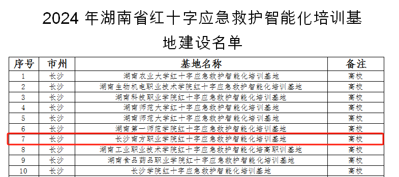 近日,湖南省紅十字會(huì)辦公室發(fā)布了2024年湖南省紅十字應(yīng)急救護(hù)智能化培訓(xùn)基地建設(shè)名單,長(zhǎng)沙南方職業(yè)學(xué)院航空旅游學(xué)院成功申報(bào)并獲批成為湖南省紅十字應(yīng)急救護(hù)智能化培訓(xùn)基地。