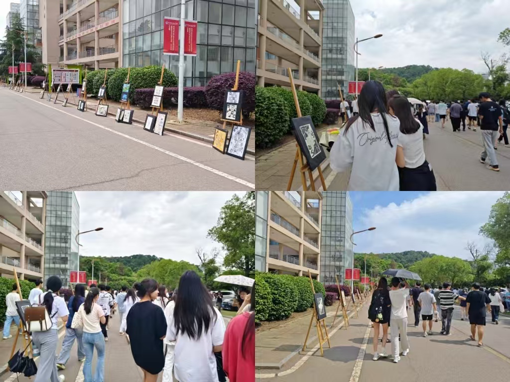 活動(dòng)現(xiàn)場(chǎng)人頭攢動(dòng),師生們沉浸在這場(chǎng)創(chuàng)意海洋中。教師們駐足在每一件作品前,時(shí)而俯身仔細(xì)觀察細(xì)節(jié),時(shí)而與身邊的同事熱烈探討,從專(zhuān)業(yè)角度對(duì)作品的創(chuàng)意、技法和表現(xiàn)形式進(jìn)行深度點(diǎn)評(píng)。同學(xué)們也自發(fā)組成 “講解員”,熱情地向同伴分享作品背后的靈感來(lái)源和創(chuàng)作故事,現(xiàn)場(chǎng)氛圍熱烈而充滿(mǎn)活力。師生們對(duì)這場(chǎng)作品展給予了高度評(píng)價(jià)和充分肯定。