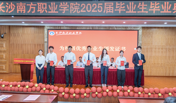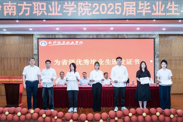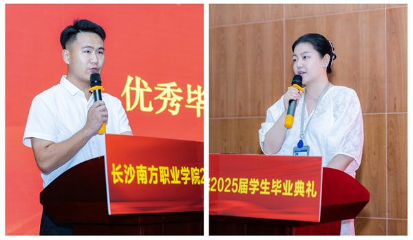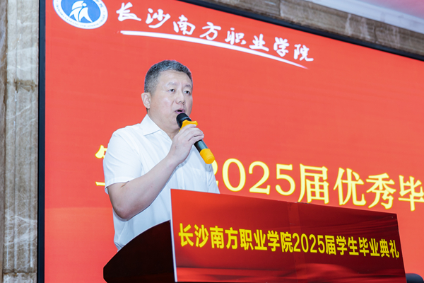 畢業(yè)典禮現(xiàn)場(chǎng)副校長(zhǎng)吳濤宣讀2025屆優(yōu)秀畢業(yè)生表彰決定,代表學(xué)校向張黃維等129名湖南省普通高等學(xué)校2025屆優(yōu)秀畢業(yè)生及唐小明等226名長(zhǎng)沙南方職業(yè)學(xué)院2025屆優(yōu)秀畢業(yè)生表示祝賀?,F(xiàn)場(chǎng),學(xué)校對(duì)以上優(yōu)秀畢業(yè)生予以集體表彰。