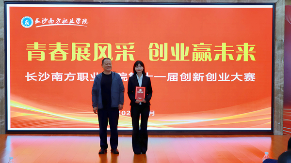龍躍君處長為三等獎獲獎創(chuàng)業(yè)項目團隊頒獎創(chuàng)新引領(lǐng)未來,創(chuàng)業(yè)成就夢想。本次大賽不僅是一場精彩紛呈的競賽,更是一堂生動的創(chuàng)新創(chuàng)業(yè)實踐課,為懷揣夢想的學(xué)子搭建了展示自我、實踐創(chuàng)意的廣闊平臺。“青春湘聚,競創(chuàng)未來”,我們見證了青春的活力與創(chuàng)新的力量。學(xué)校將持續(xù)營造濃厚的創(chuàng)新創(chuàng)業(yè)氛圍,支持更多學(xué)生將奇思妙想轉(zhuǎn)化為現(xiàn)實成果,為國家和社會發(fā)展貢獻青春智慧!