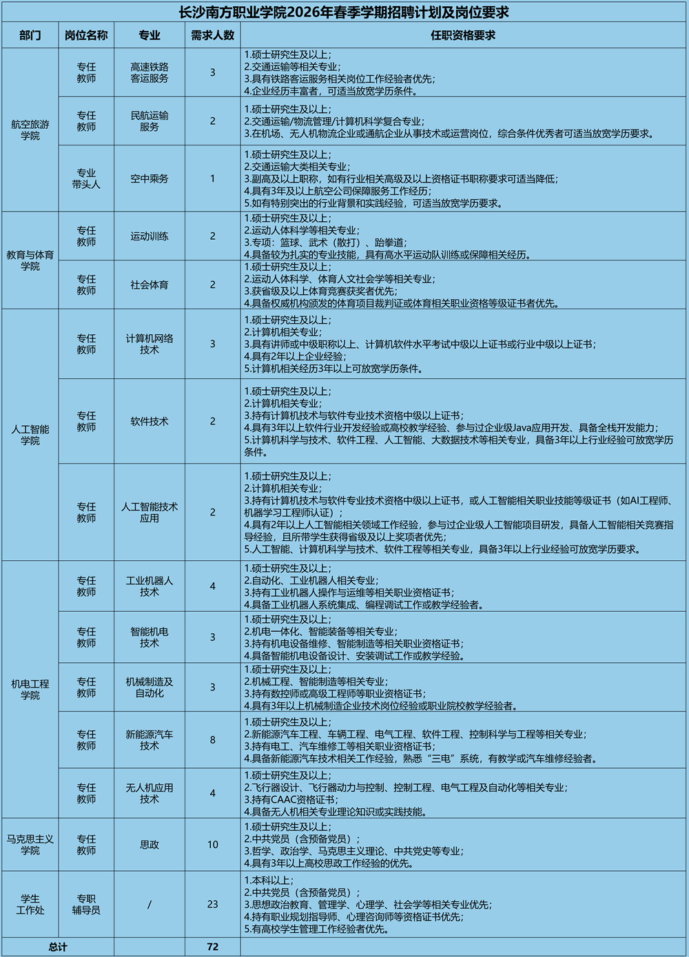 招聘單位: 長沙南方職業(yè)學(xué)院