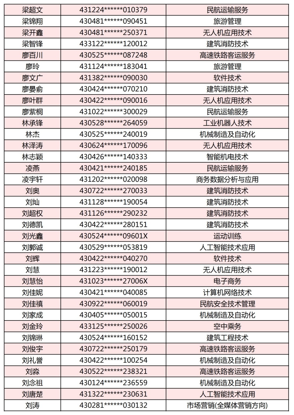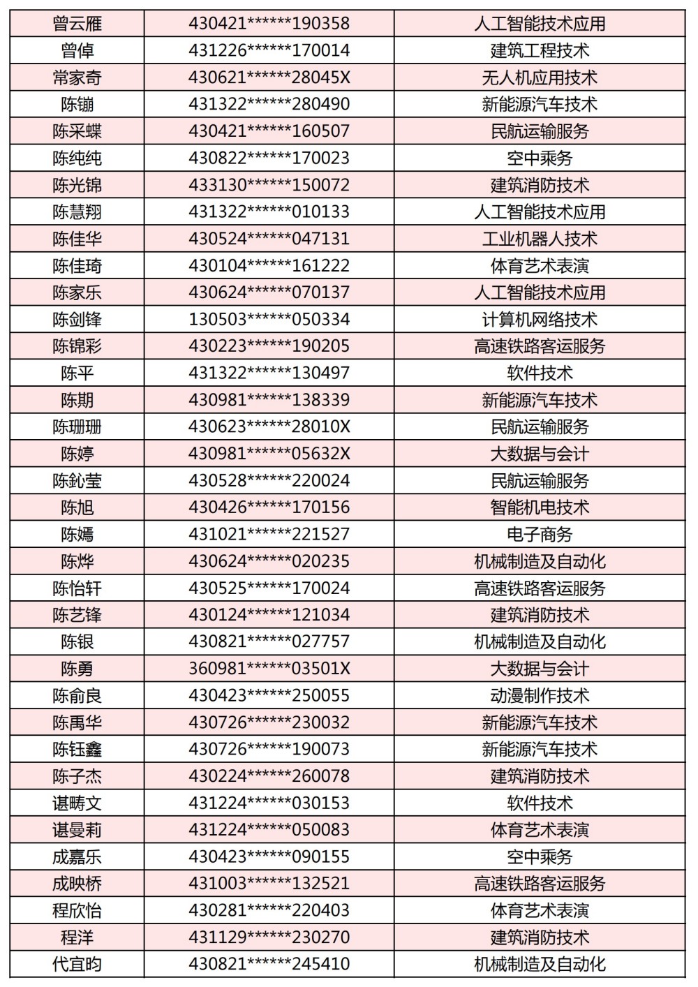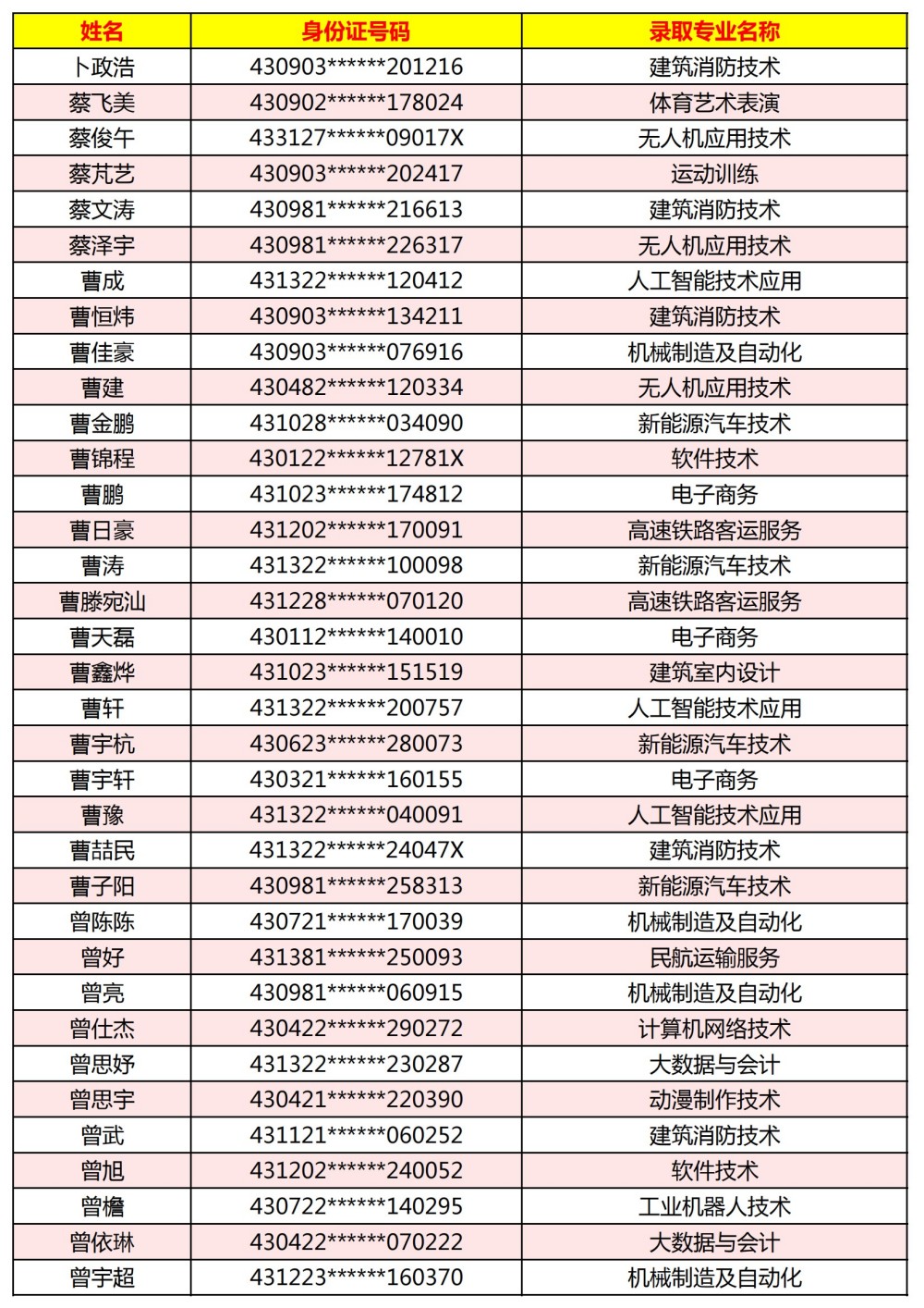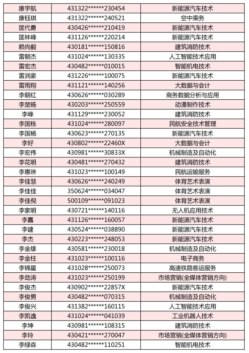 附:長(zhǎng)沙南方職業(yè)學(xué)院2025年單獨(dú)招生考試第一志愿錄取名單