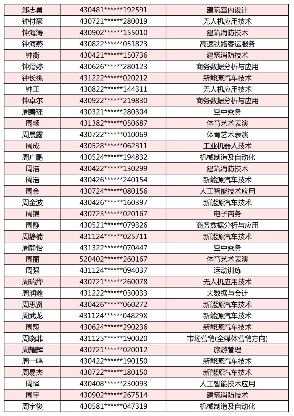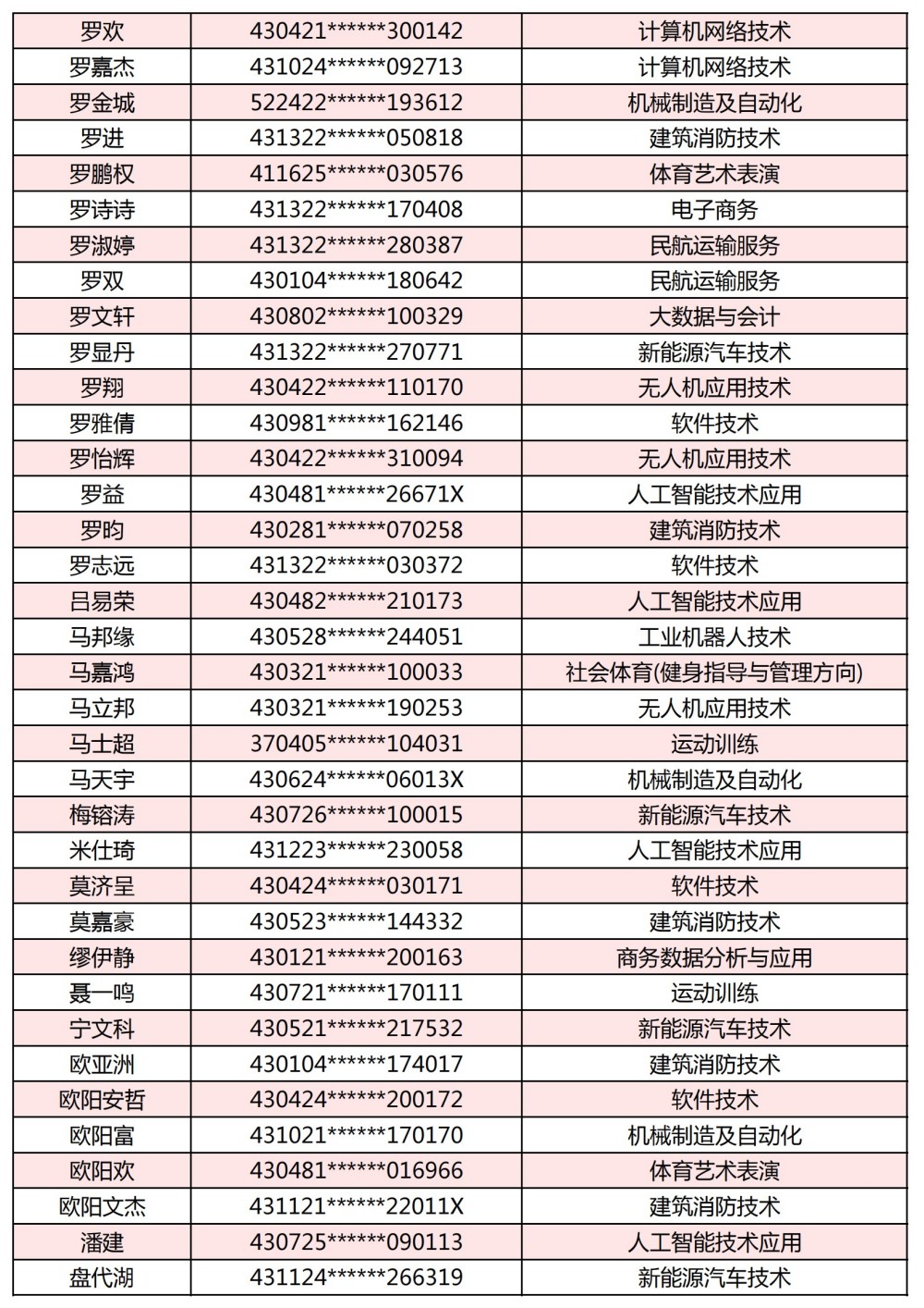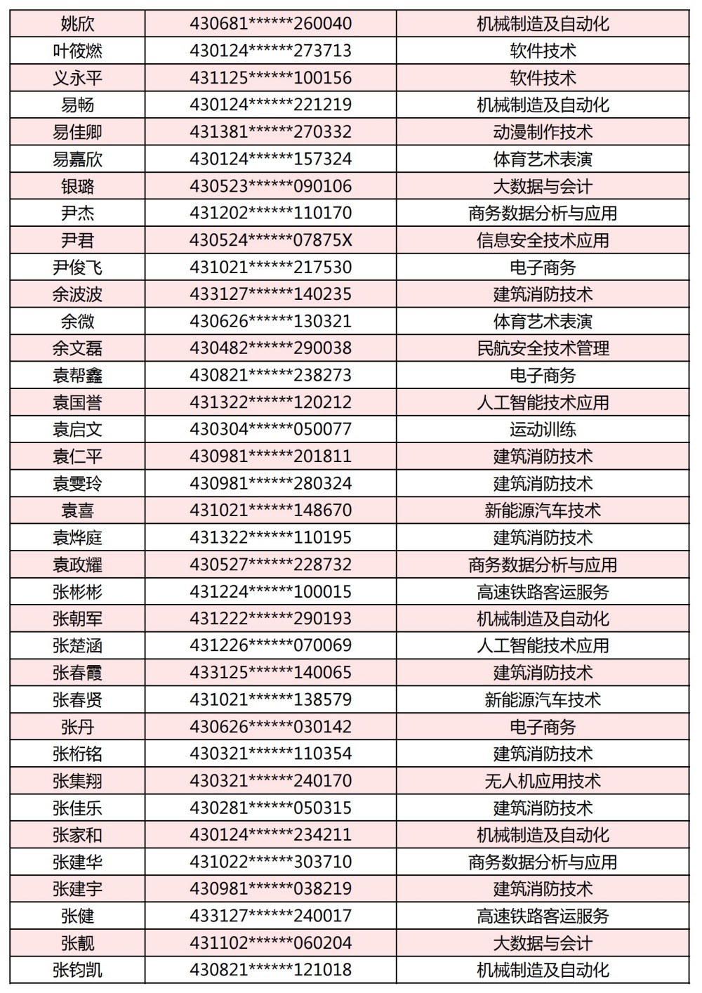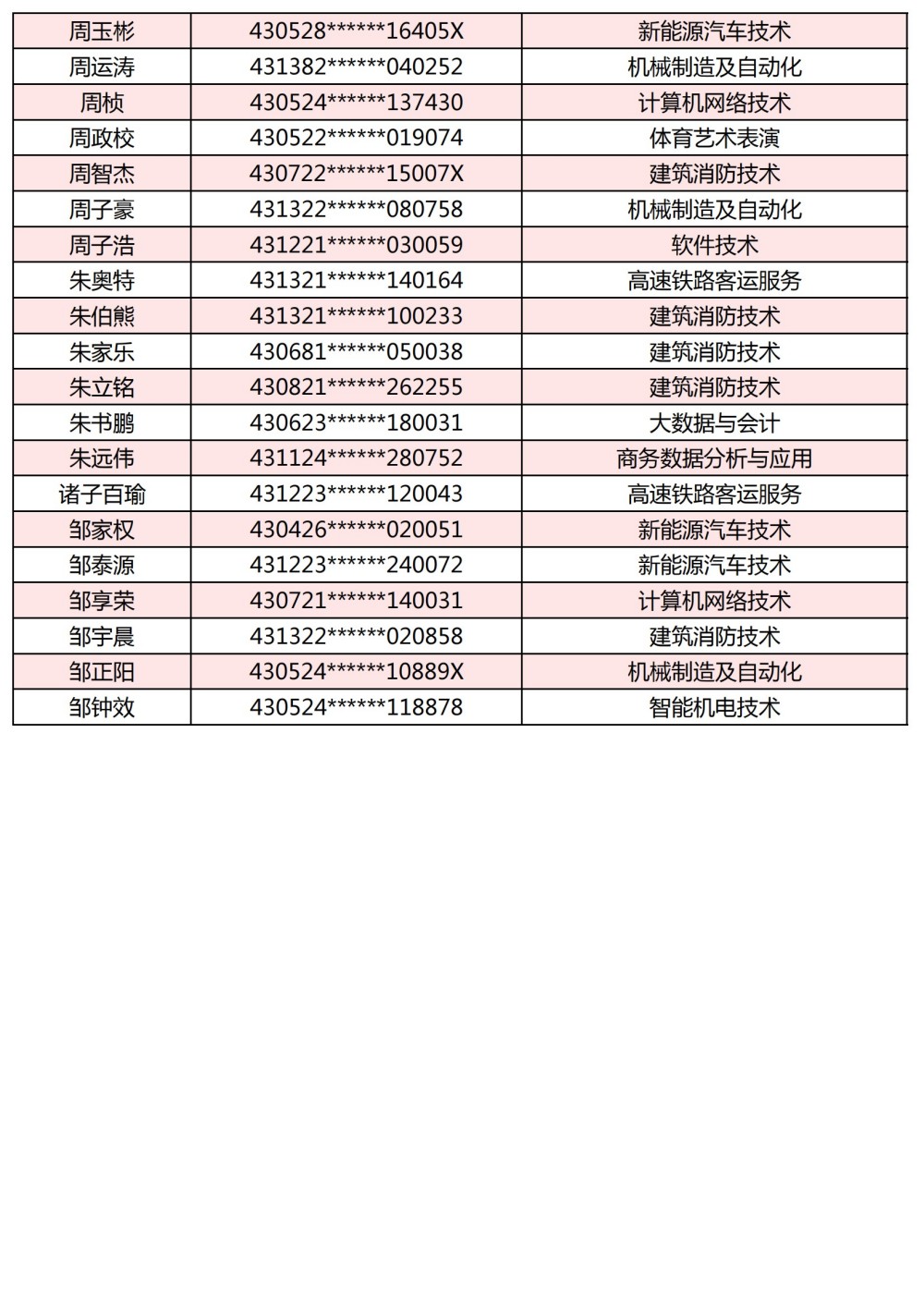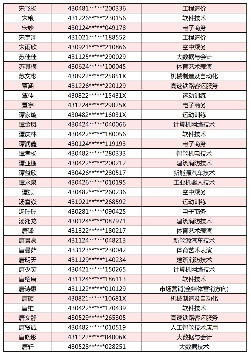 附:長(zhǎng)沙南方職業(yè)學(xué)院2025年單獨(dú)招生考試第一志愿錄取名單