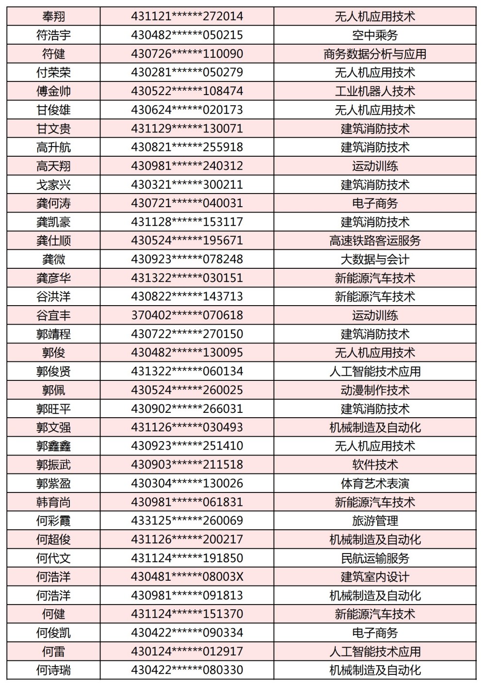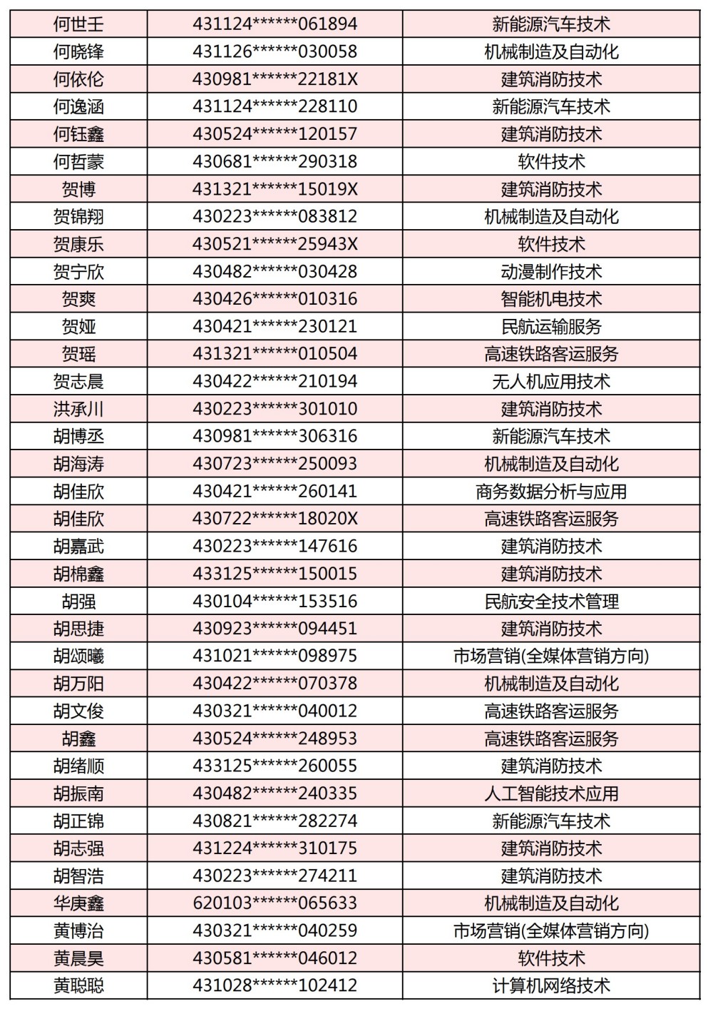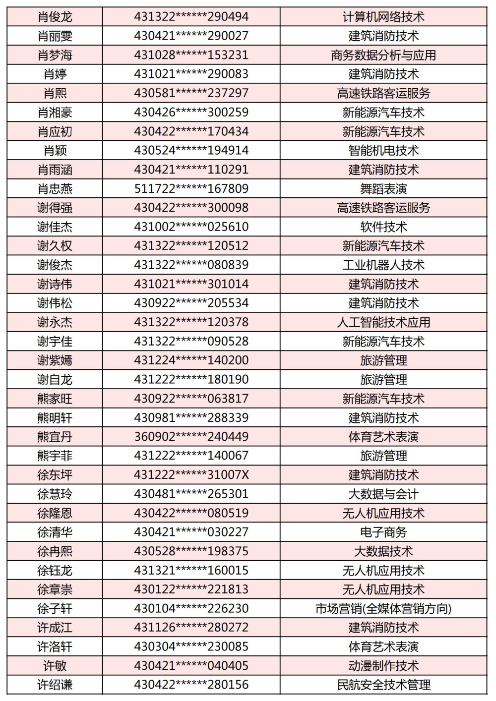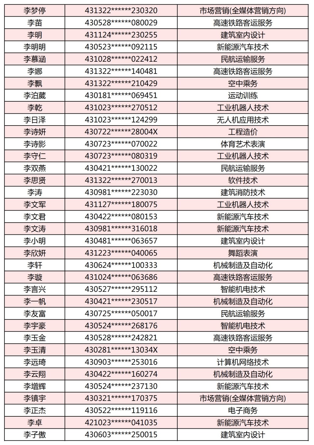 附:長(zhǎng)沙南方職業(yè)學(xué)院2025年單獨(dú)招生考試第一志愿錄取名單
