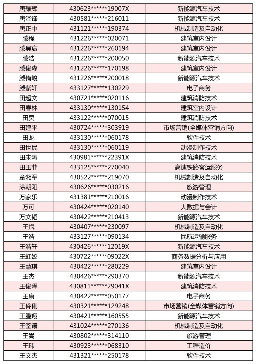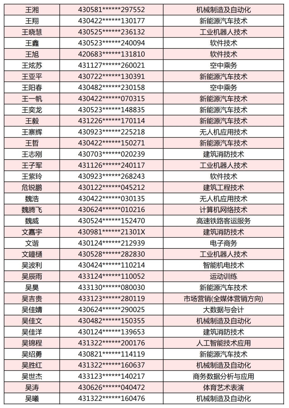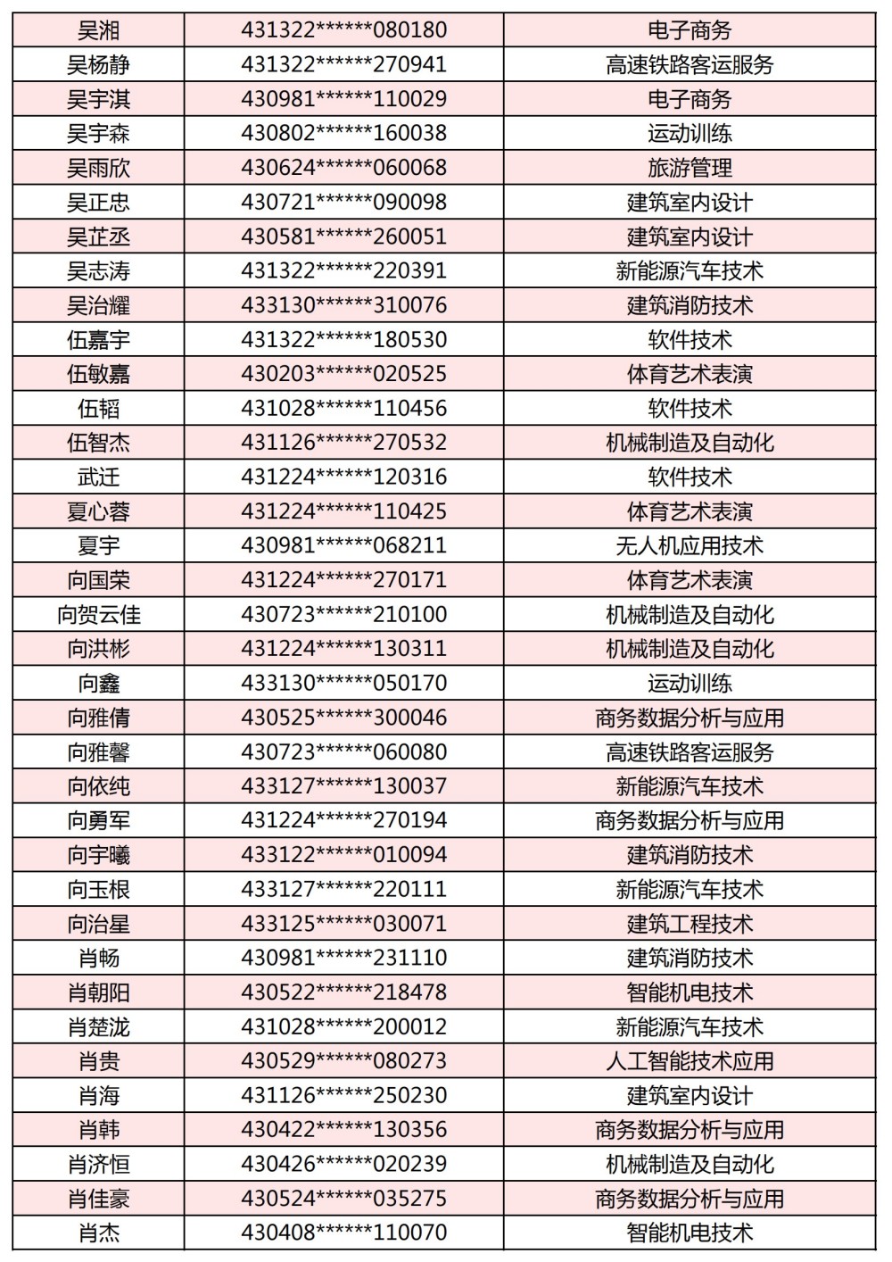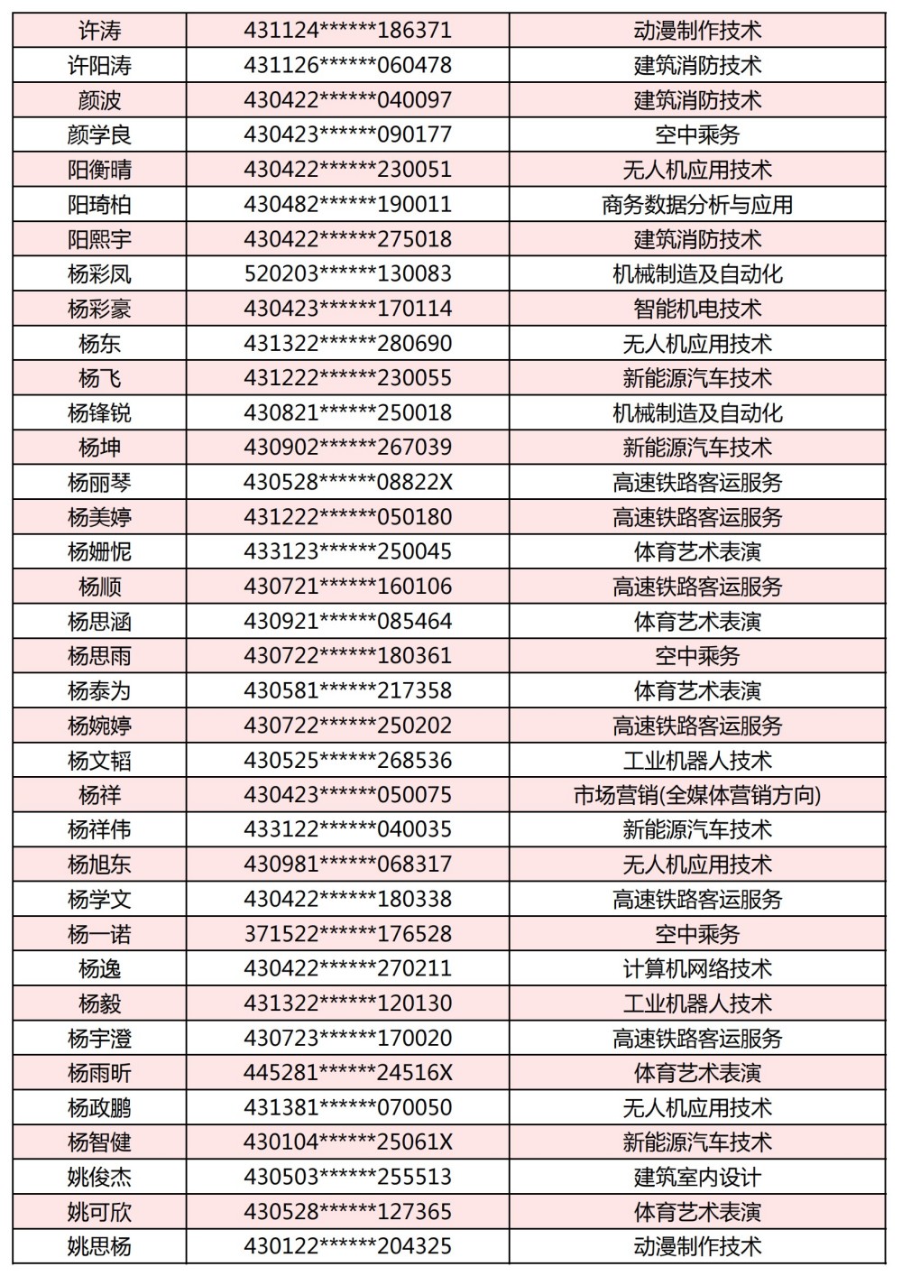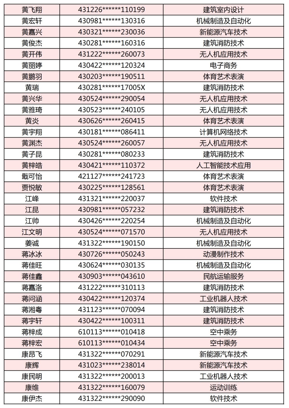 附:長(zhǎng)沙南方職業(yè)學(xué)院2025年單獨(dú)招生考試第一志愿錄取名單