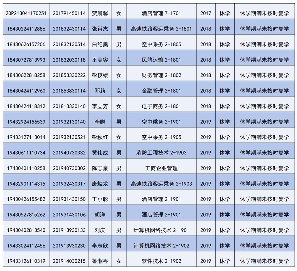 休學(xué)期滿逾期未復(fù)學(xué)學(xué)生名單