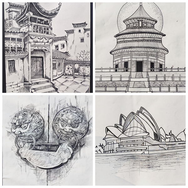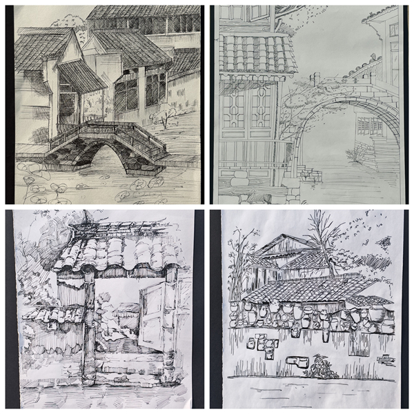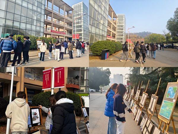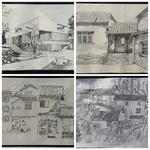 展覽現(xiàn)場人頭攢動(dòng)、好評(píng)如潮。“陶瓷冰裂紋理融入室內(nèi)墻面設(shè)計(jì),既復(fù)古又新穎,太有創(chuàng)意了!”“原來非遺技藝能與現(xiàn)代設(shè)計(jì)結(jié)合得如此精妙,讓我對(duì)專業(yè)學(xué)習(xí)有了新的認(rèn)知!”駐足觀展的師生們對(duì)著一幅幅作品頻頻稱贊,低年級(jí)學(xué)生圍在學(xué)長學(xué)姐身旁,認(rèn)真請(qǐng)教采風(fēng)心得與創(chuàng)作思路,在濃厚的藝術(shù)交流氛圍中,非遺文化的魅力與工匠精神的內(nèi)涵得以生動(dòng)傳遞。此次展出的400余幅作品涵蓋速寫、馬克筆創(chuàng)作、水彩畫、攝影等多種形式,題材豐富、風(fēng)格鮮明,既展現(xiàn)了學(xué)生扎實(shí)的專業(yè)功底和獨(dú)特的藝術(shù)審美,更凸顯了同學(xué)們對(duì)非遺文化的深刻理解與創(chuàng)新轉(zhuǎn)化能力,成為建筑學(xué)院美育育人成效的生動(dòng)注腳。