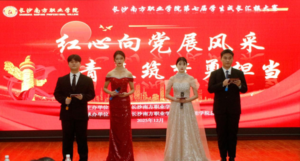 2025年12月16日,長(zhǎng)沙南方職業(yè)學(xué)院“紅心向黨展風(fēng)采·青春筑夢(mèng)勇?lián)?dāng)”暨第七屆學(xué)生成長(zhǎng)匯報(bào)大賽在學(xué)術(shù)報(bào)告廳隆重舉行。學(xué)校副校長(zhǎng)肖建偉、馬克思主義學(xué)院院長(zhǎng)彭?xiàng)澚?、就業(yè)指導(dǎo)中心主任張偉、學(xué)工處副處長(zhǎng)周燦、夏妍、陳杰浩,以及各二級(jí)學(xué)院副院長(zhǎng)、團(tuán)總支書記、指導(dǎo)教師代表出席活動(dòng),與數(shù)百名師生共同見證了這場(chǎng)精彩紛呈的青春盛會(huì)。