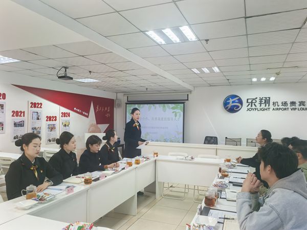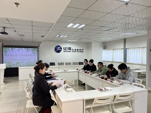 在貴賓服務(wù)部經(jīng)理汪慧的帶領(lǐng)下,龔鵬副院長(zhǎng)一行參觀了長(zhǎng)沙黃花機(jī)場(chǎng)樂翔商務(wù)貴賓廳,了解企業(yè)的現(xiàn)場(chǎng)環(huán)境、組織架構(gòu)、工作內(nèi)容及業(yè)務(wù)范圍。在座談會(huì)上,校企雙方就建立實(shí)訓(xùn)基地、企業(yè)訂單班、校企師資共享以及聯(lián)合開展研學(xué)活動(dòng)等合作項(xiàng)目深入交流意見。同時(shí)也針對(duì)課程共建、產(chǎn)學(xué)研融合、師資認(rèn)定、工作待遇、晉升渠道等方面與企業(yè)展開探討。