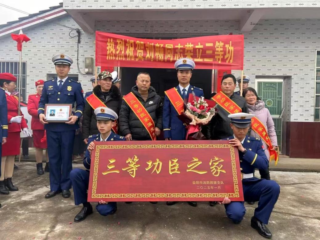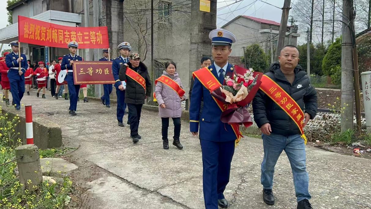“劉暢同志在滅火救援中不怕困難,不畏犧牲,在比武場(chǎng)上兩次取得前三的好成績(jī),今天我們來送喜報(bào)了!”益陽市消防救援支隊(duì)聯(lián)合沅江消防救援大隊(duì)和縣退役軍人事務(wù)局,來到沅江市黃茅洲鎮(zhèn)蓼花村,為四級(jí)消防士劉暢同志送上三等功牌匾及喜報(bào),將組織的關(guān)懷與榮譽(yù)送到家,傳遞濃濃的“火焰藍(lán)”溫情。