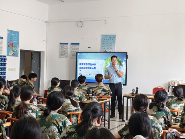 各專業(yè)教研室的新生入學(xué)教育同樣精彩紛呈。學(xué)術(shù)報(bào)告廳的專業(yè)介紹率先“解鎖”專業(yè)密碼,高鐵綜合實(shí)訓(xùn)室的參觀體驗(yàn)讓同學(xué)們連連稱贊“太酷了”。航空模擬艙實(shí)訓(xùn)大廳內(nèi),乘機(jī)體驗(yàn)、技能展示吸引眾多目光,專業(yè)宣講內(nèi)容充實(shí)、“干貨”滿滿。茶藝實(shí)訓(xùn)室內(nèi),優(yōu)秀學(xué)長(zhǎng)、企業(yè)導(dǎo)師帶來(lái)精彩分享,在輕松愉悅的氛圍中傳遞經(jīng)驗(yàn)與關(guān)懷。整場(chǎng)專業(yè)教育充分彰顯了“航旅范”,極大增強(qiáng)了新生對(duì)專業(yè)的認(rèn)同與向往。