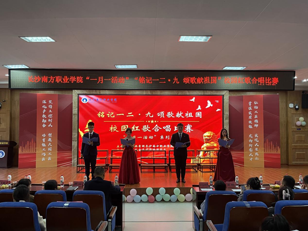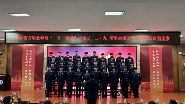 為弘揚愛國主義精神,傳承“一二·九”運動光榮傳統(tǒng),12月9日,長沙南方職業(yè)學院在學術報告廳隆重舉辦“銘記一二·九 頌歌獻祖國”校園紅歌合唱比賽。校黨委委員、副校長肖建偉、學生工作處及各二級學院領導嘉賓蒞臨現(xiàn)場,與師生共同參與這場紅色合唱盛會。
